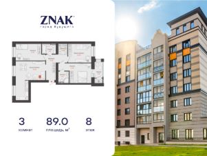 Продается 3-комнатная квартира площадью 89.00 кв. м. с предчистовой отделкой. Квартира находится в жилом комплексе комфорт-класса ZNAK, расположенном в районе ул. Берша.