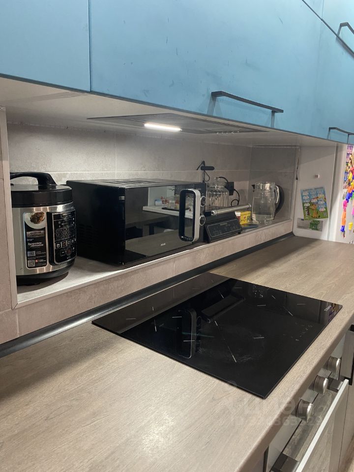 На кухне гостиной - установлен кухонный гарнитур со встроенной техникой (индукционная варочная панель, духовой шкаф, вытяжка, посудомоечная машина). В гостиной зоне установлен кондиционер. В туалете установлен водонагреватель на 80 литров.