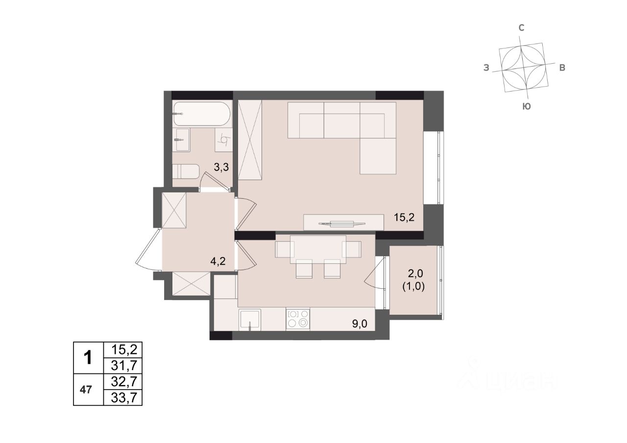 Общая площадь32,7 м²