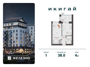 Продается 1-комнатная квартира площадью 38.00 кв. м с предчистовой отделкой. Квартира находится в жилом комплексе комфорт+ "Икигай" от федерального девелопера "Железно".