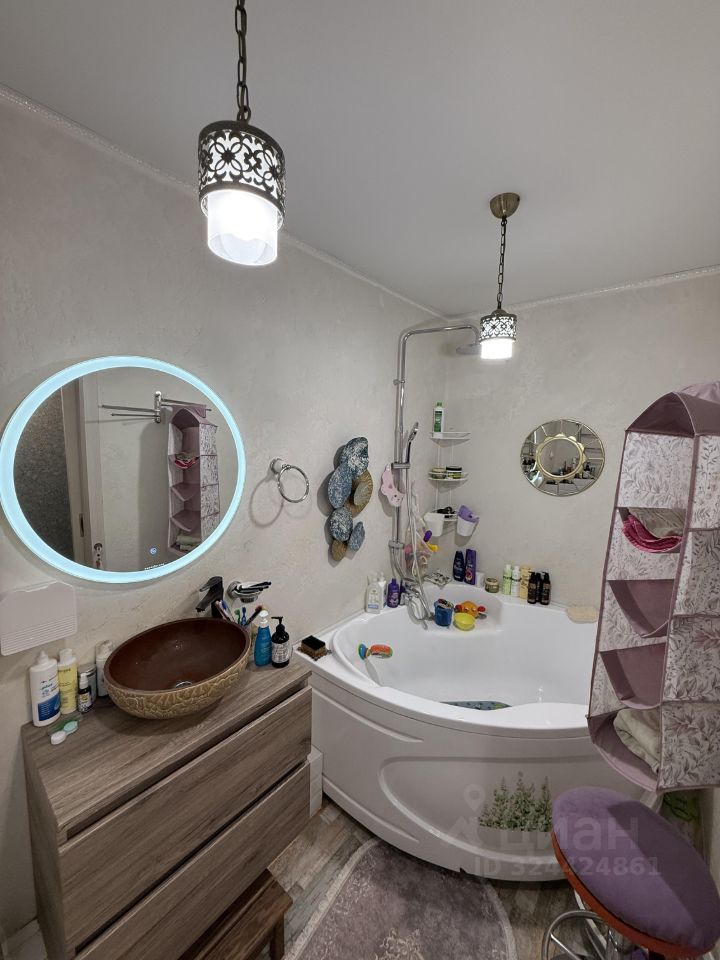 Квартира оформлена с использованием качественных материалов и готова к комфортному проживанию. В квартире есть три комнаты, совмещенный и отдельный санузлы, гардеробная комната, кондиционер. Просторная кухня гостиная станет отличным местом для семейных ужинов и приема гостей.