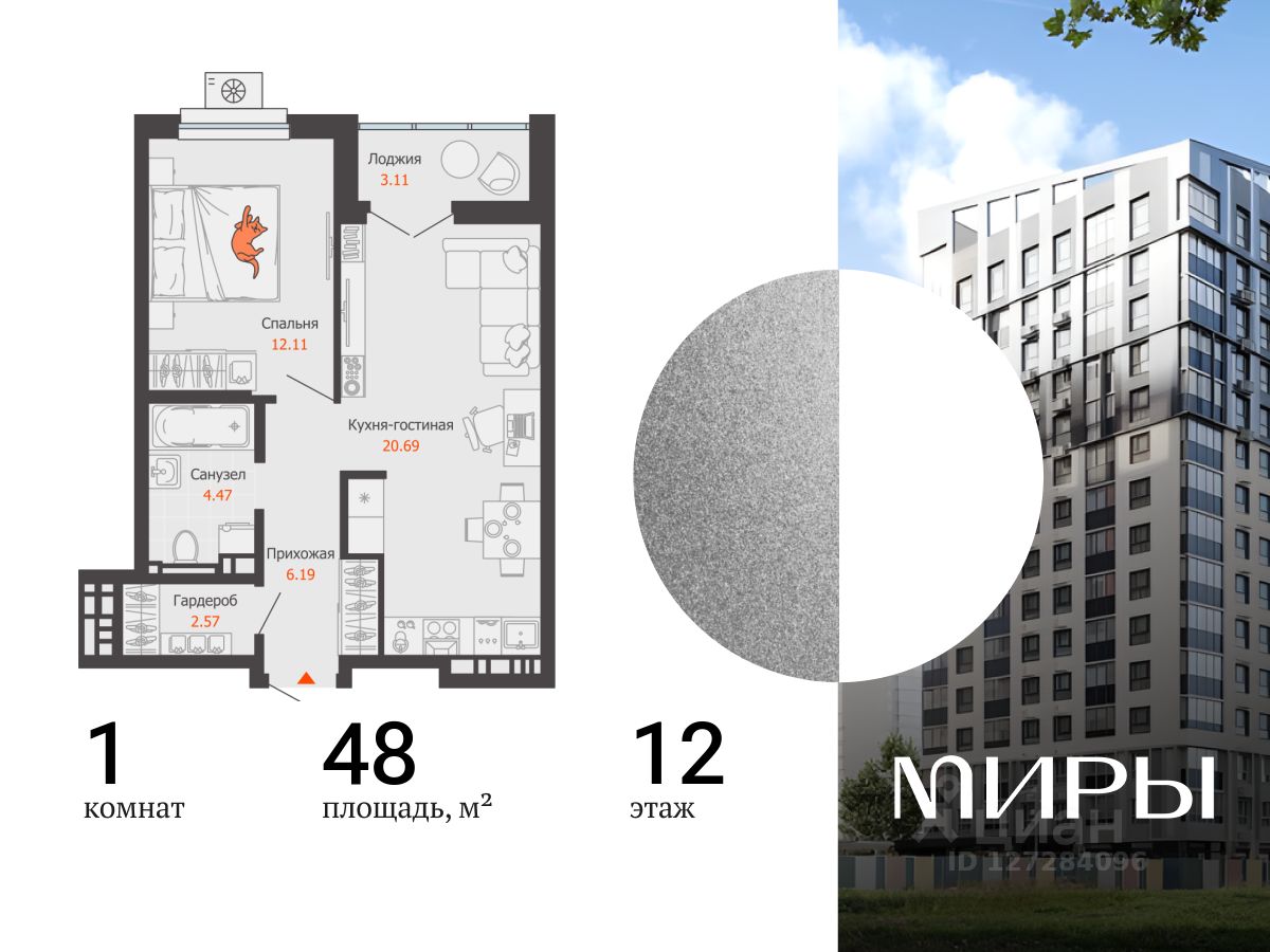 В продаже 1-комнатная квартира площадью 48.00 кв. м, расположенная в новом жилом комплексе комфорт-класса "Центропарк". Комплекс от федерального девелопера "Железно" находится в районе Тулака - географическом центре Волгограда.