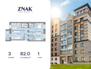 Продается 3-комнатная квартира площадью 82.00 кв. м. с предчистовой отделкой. Квартира находится в жилом комплексе комфорт-класса ZNAK, расположенном в районе ул. Берша.