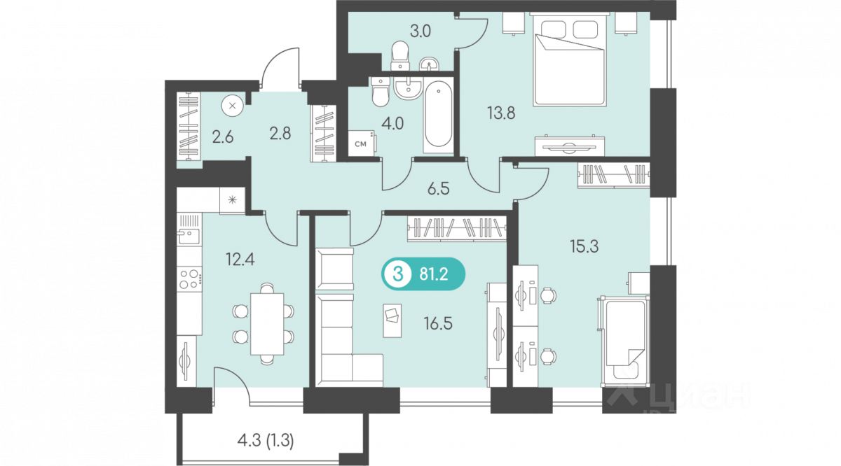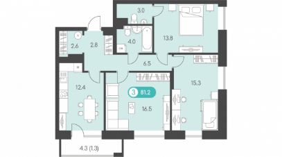 - Все комнаты правильной формы площадью 16,5 и 15,3 квм. В данных комнатах уместиться вся необходимая мебель + шкафы для хранения одежды.