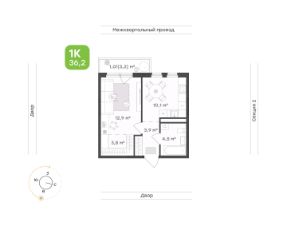 Площадь 36,2 кв.м. с классической планировкой: изолированная спальня и кухня.