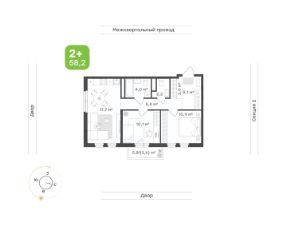 Просторная евро-планировка с окнами на две стороны света — идеальное решение для семьи, ценящей свет и пространство. Площадь 58,2 кв.м. с двумя спальнями, двумя санузлами, кухней-гостиной и продуманным зонированием. Потолки 2,7 м. Объединенная кухня-гостиная 17,7 кв.м. — пространство для готовки, общения и семейных ужинов за общим столом. Две отдельные спальни обеспечивают комфорт и личное пространство. Два санузла, один из которых оснащен зоной под стиральную машину. Гардеробная 2 кв.м. — удобное место для хранения и организации вещей. Планировка, в которой приятно проводить время с семьей.
