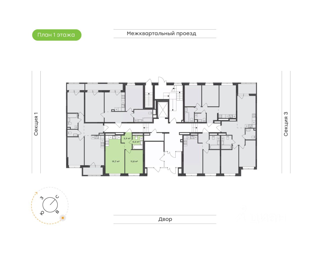 Площадь 39,4 кв.м. с объединенной зоной кухни, столовой и гостиной, а также отдельная спальня.