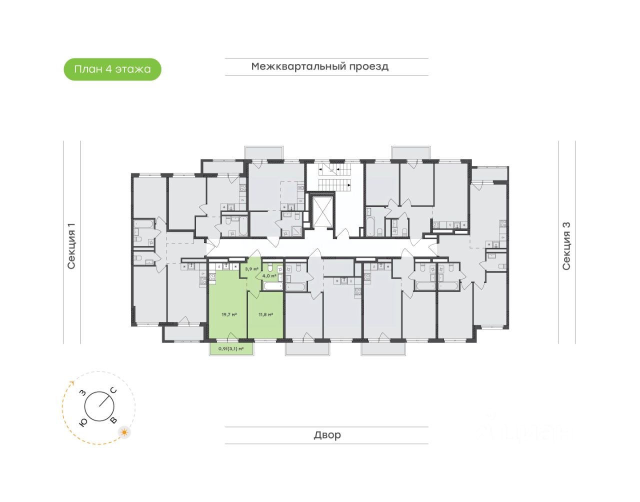 Площадь 40,3 кв.м. с объединенной зоной кухни, столовой и гостиной, а также отдельная спальня.