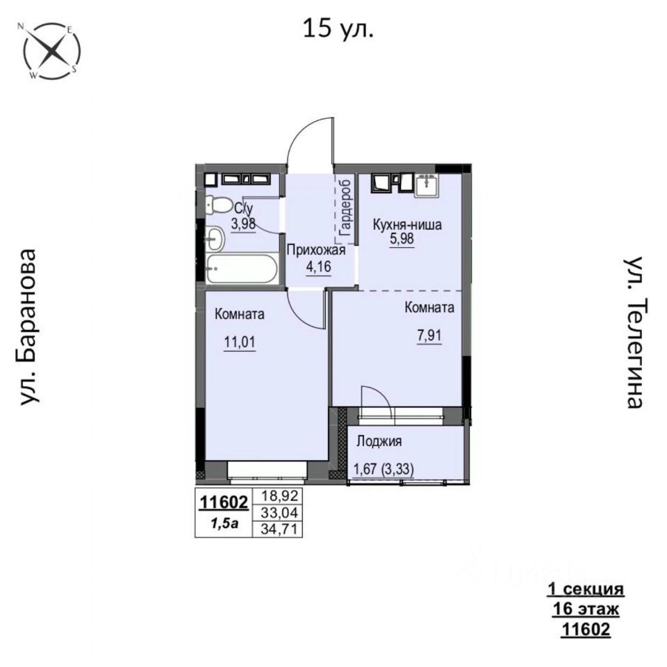 Продаётся 2-комнатная квартира в строящемся доме (Дом 2), срок сдачи: III-кв. 2026, общей площадью 34.71 кв.м., на 16 этаже. Жилой комплекс "Успенский" представляет собой 22-этажный дом премьер-класса, расположенный по улице Телегина в Ленинском районе города Ижевска.