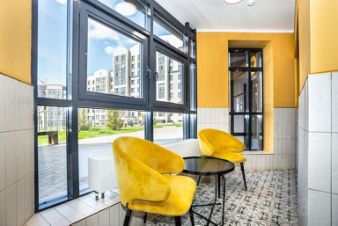 Площадки для малышей и подростков защищены мягким покрытием, а для тихого отдыха жителей размещаются лаунж-пространства, где каждый может расслабиться и полностью восстановить силы. Активные и тихие места находятся на комфортном расстоянии и не мешают друг другу.