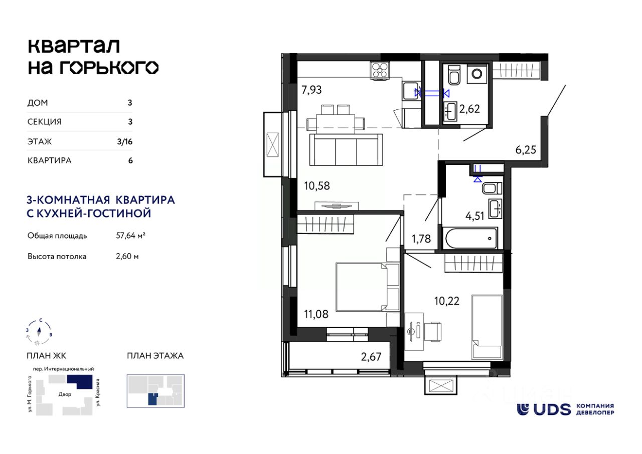Старт продаж! Успейте забронировать квартиру по ценам 2025-го года. Два дома уже построены и заселены. Идёт строительство последнего дома комплекса — можно переехать сразу в готовую инфраструктуру в центре Ижевска. "Квартал на Горького" — современный жилой комплекс от UDS в историческом центре Ижевска: — 10 минут до набережной и Летнего сада — 2 минуты до остановки, 22 маршрута транспорта — Школа 25, школа искусств 2, детские сады и театры — в шаговой доступности — Невысокая застройка — дома 616 этажей — Огороженный двор без машин, безопасный для детей — Планировки - от студий до трехкомнатных — Индивидуальные кладовые Жилье в центре надежный ликвид, с которым вы всегда будете в плюсе. Выбирайте ЖК "Квартал на Горького" для жизни и инвестиций.