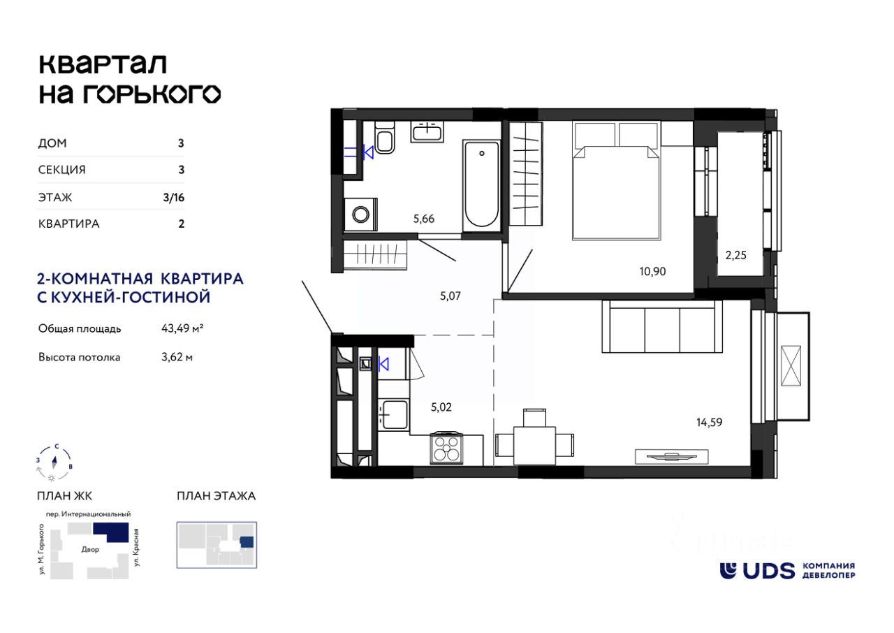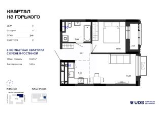Общая площадь43,49 м²