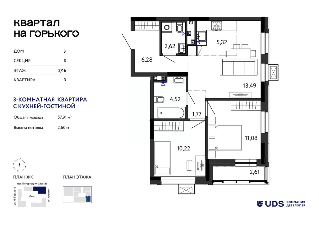 Старт продаж! Успейте забронировать квартиру по ценам 2025-го года. Два дома уже построены и заселены. Идёт строительство последнего дома комплекса — можно переехать сразу в готовую инфраструктуру в центре Ижевска. "Квартал на Горького" — современный жилой комплекс от UDS в историческом центре Ижевска: — 10 минут до набережной и Летнего сада — 2 минуты до остановки, 22 маршрута транспорта — Школа 25, школа искусств 2, детские сады и театры — в шаговой доступности — Невысокая застройка — дома 616 этажей — Огороженный двор без машин, безопасный для детей — Планировки - от студий до трехкомнатных — Индивидуальные кладовые Жилье в центре надежный ликвид, с которым вы всегда будете в плюсе. Выбирайте ЖК "Квартал на Горького" для жизни и инвестиций.