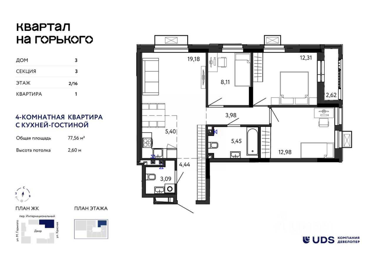 Старт продаж! Успейте забронировать квартиру по ценам 2025-го года. Два дома уже построены и заселены. Идёт строительство последнего дома комплекса — можно переехать сразу в готовую инфраструктуру в центре Ижевска. "Квартал на Горького" — современный жилой комплекс от UDS в историческом центре Ижевска: — 10 минут до набережной и Летнего сада — 2 минуты до остановки, 22 маршрута транспорта — Школа 25, школа искусств 2, детские сады и театры — в шаговой доступности — Невысокая застройка — дома от 6 до 16 этажей — Огороженный двор без машин, безопасный для детей — Планировки - от студий до трехкомнатных — Индивидуальные кладовые Жилье в центре надежный ликвид, с которым вы всегда будете в плюсе. Выбирайте ЖК "Квартал на Горького" для жизни и инвестиций.