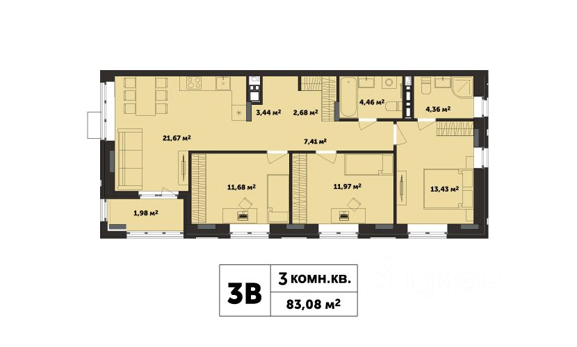 Продаётся 3-комнатная квартира в строящемся доме (Дом 5), срок сдачи: III-кв. 2026, общей площадью 82.79 кв.м., на 4 этаже. Жилой комплекс "Седьмое Небо" для тех, кто хочет чуть большего. Чуть большее - это умные жилые планировки. Активные дворы и стильная архитектура. И чуть, больше чем просто хорошее место - в двух минутах от улицы Ленина, но без дорожного шума, пыли и выхлопных газов.