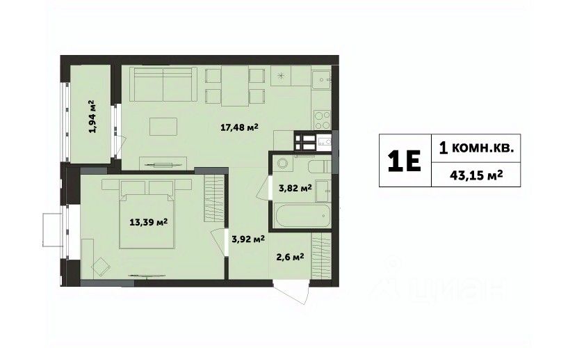 Продаётся 1-комнатная квартира в строящемся доме (Дом 5), срок сдачи: III-кв. 2026, общей площадью 42.87 кв.м., на 4 этаже. Жилой комплекс "Седьмое Небо" для тех, кто хочет чуть большего. Чуть большее - это умные жилые планировки. Активные дворы и стильная архитектура. И чуть, больше чем просто хорошее место - в двух минутах от улицы Ленина, но без дорожного шума, пыли и выхлопных газов.