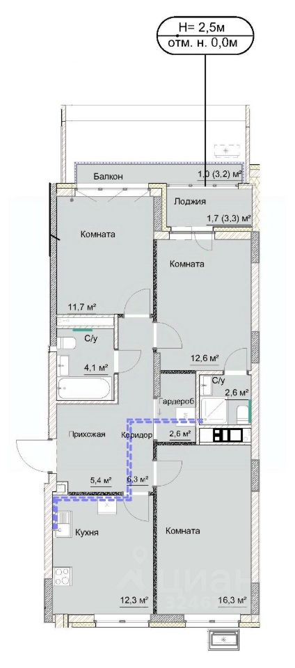 Площадь кухни12,3 м²