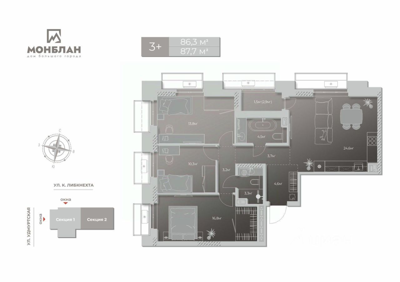 Дом большого города Монблан- это сданный дом бизнес-класса, расположенный в сердце Ижевска на кольце улиц Удмуртской и К.Либкнехта. Вся городская инфраструктура в шаговой доступности. Дом сдан! Условия приобретения: 1. Скидка при 100% оплате ( СИ, IT- без субсидирования) 2. Субсидированная ипотека от 3,5% 3.Ипотека с ПВ от 10% Стоимость УКАЗАНА БЕЗ СКИДКИ. Преимущества дома: -Просторный функциональный холл и бесшумные лифты; -наземный и подземный паркинг с автоматизированной системой доступа; -приватная благоустроенная придомовая зеленая территория с зонами для отдыха и детской площадкой. Технологические решения: 1.Витражное остекление 2.Ниши для кондиционеров 3.Наружные и межквартирные стены из красного керамического кирпича и окна с шестикамерным профилем - для повышенной звукоизоляции 4.Усиленная звукоизоляции пола 5. Приточная вентиляция с фильтрами предварительной очистк Безопасность: 1.Огороженная территория с системой видеонаблюдения по периметру дома и во дворе и зоной консьержа внутри дома 2. Автоматическая передача показаний счетчиков. 3. Подводка интернет кабеля и ТВ-кабеля в квартиру.
