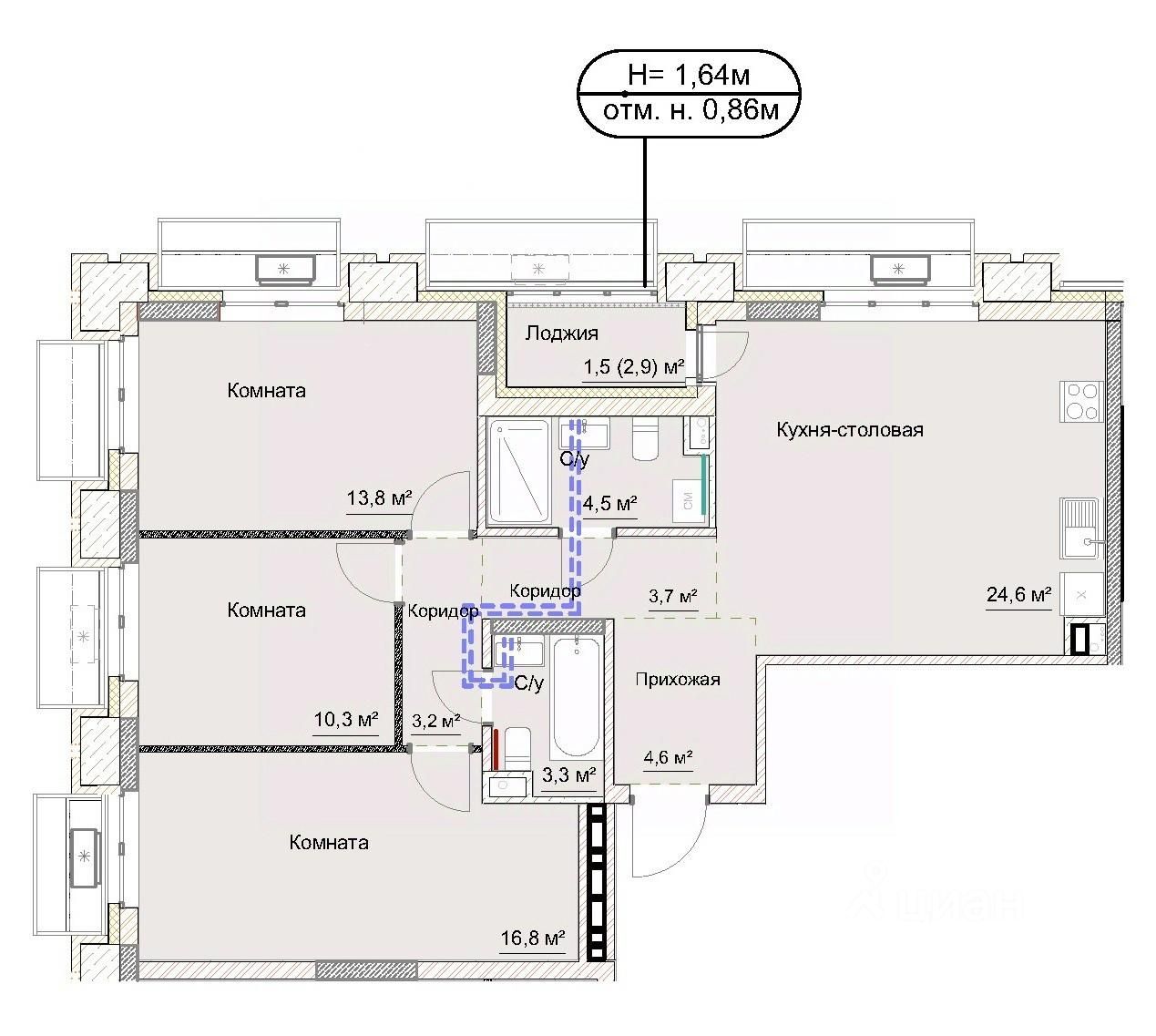 Предчистовая — остаётся установить сантехнику, розетки, двери и навести красоту: поклеить обои и уложить на пол покрытие