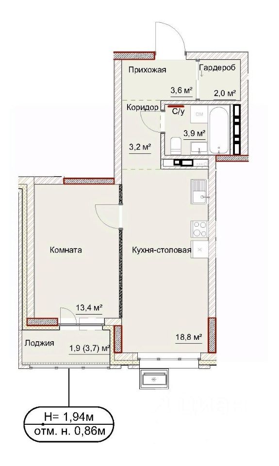 1 лоджия