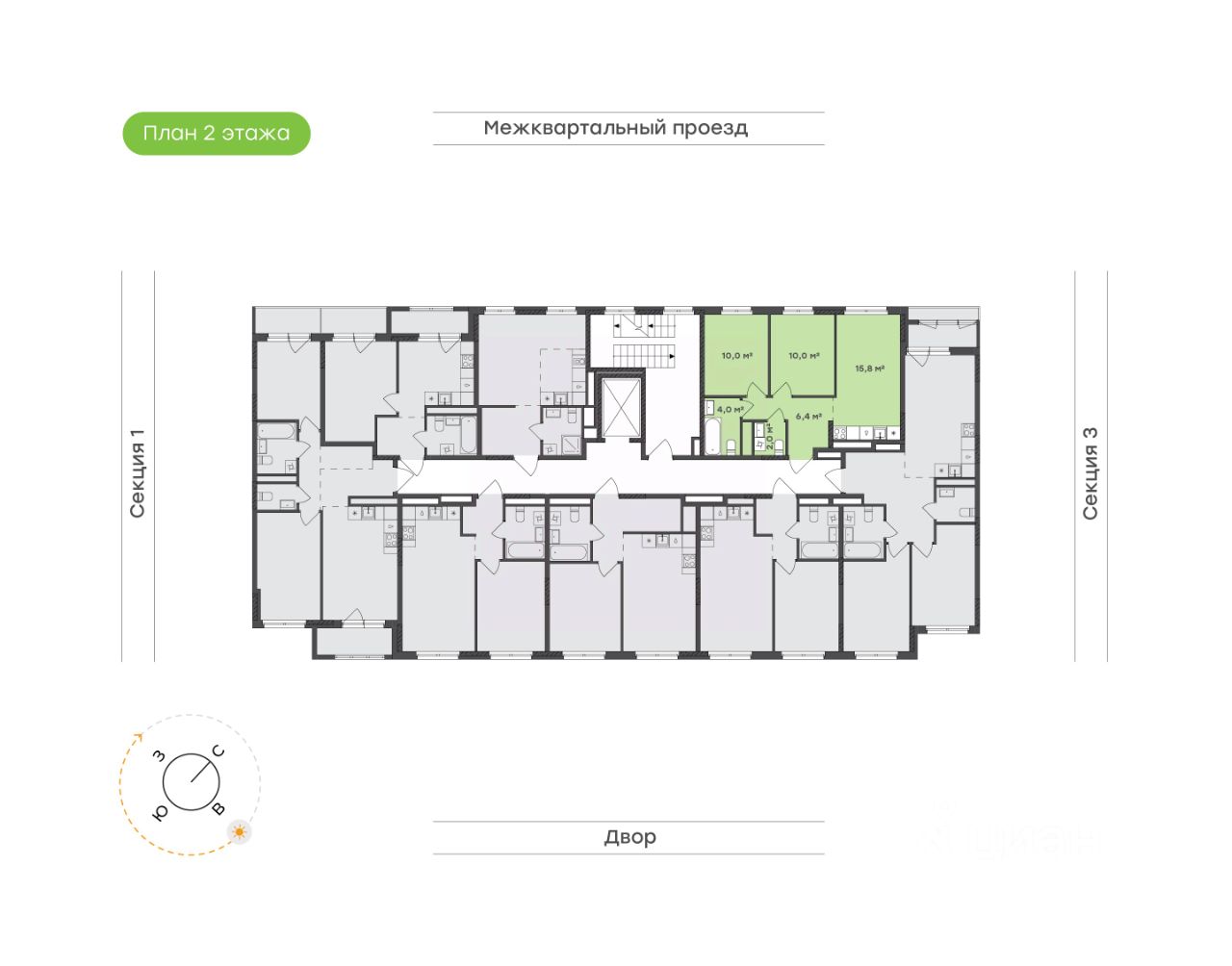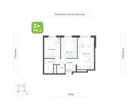 Общая площадь 48,2 кв.м. с двумя отдельными спальнями и двумя санузлами — подходящий вариант для семьи с ребенком.