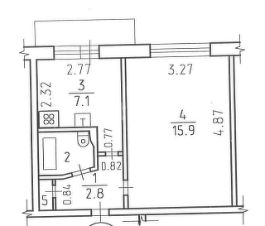 Продается однокомнатная квартира площадью 28,6 кв. м на 6 этаже 9-этажного дома.