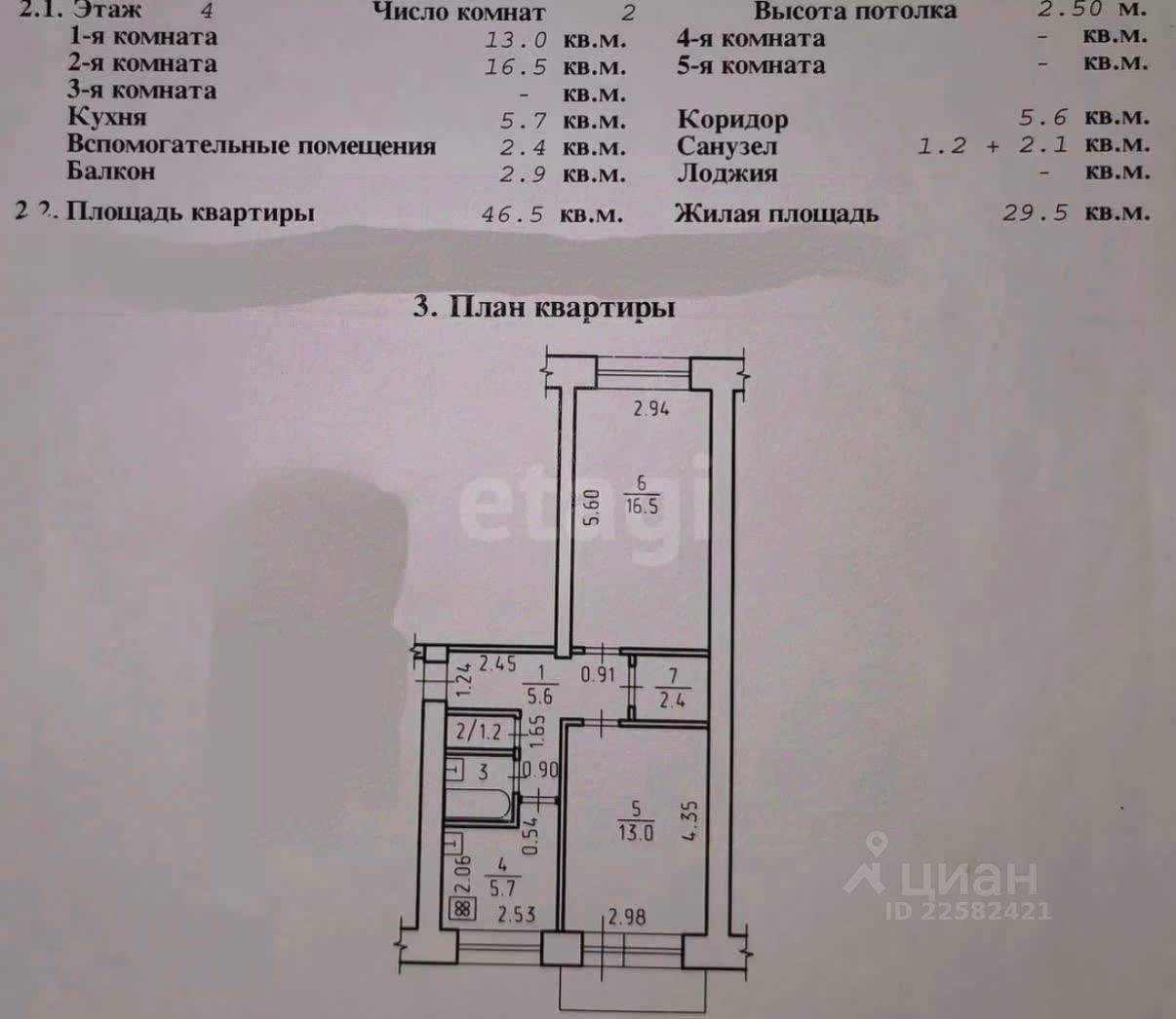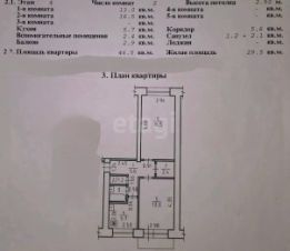 Продаётся двухкомнатная квартира 46,5 м² на комфортном 4 этаже.