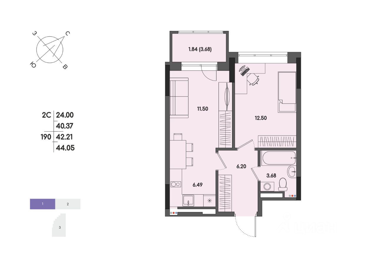 Общая площадь42,21 м²