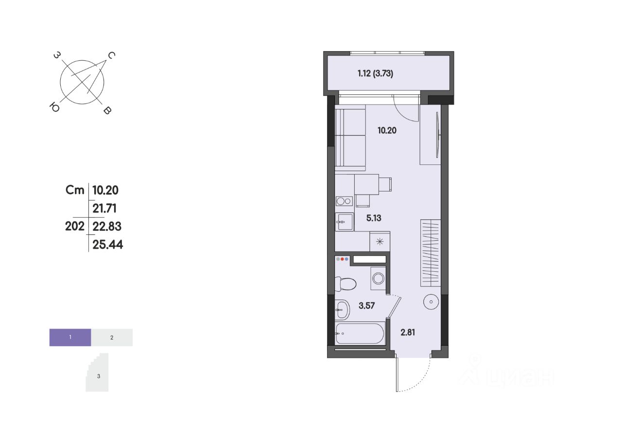 Общая площадь22,83 м²