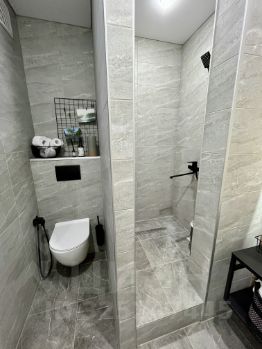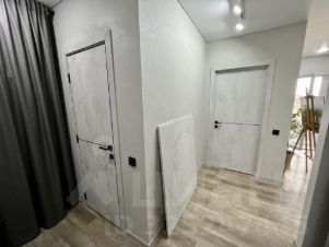 — Пол: кварцвиниловое покрытие (прихожая, кухня-гостиная, спальня), плитка (санузел, лоджия).