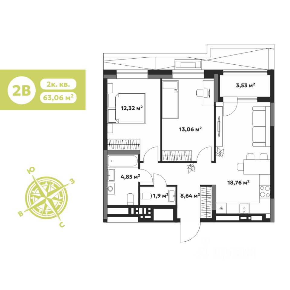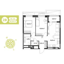 2-комн. квартира, 63,06 м²