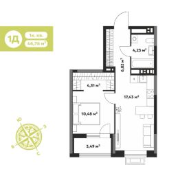 Продаётся 1-комнатная квартира в строящемся доме (2 этап), срок сдачи: I-кв. 2028, общей площадью 46.76 кв.м., на 7 этаже.
