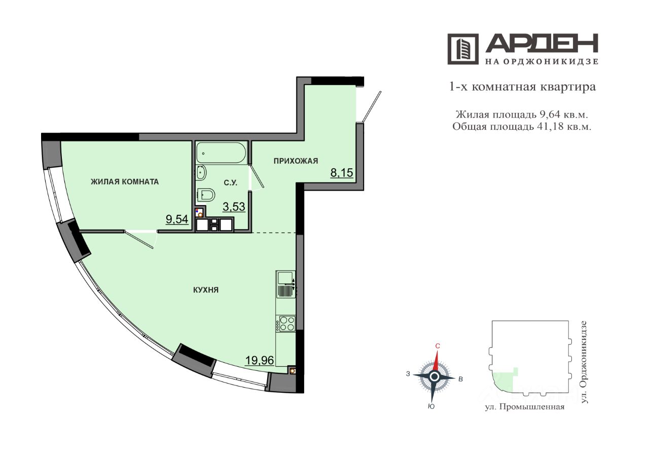 Продаётся 1-комнатная квартира в строящемся доме (дом 54), срок сдачи: II-кв. 2028, общей площадью 41.02 кв.м., на 13 этаже. Новый жилой комплекс "Арден на Орджоникидзе" от застройщика ГК "Арден" расположен по адресу: Удмуртская Республика, Ижевск, улица Гольянский посёлок, 54