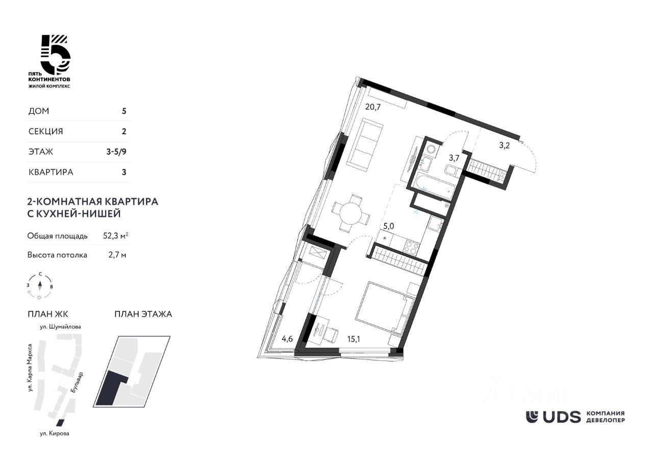 СТАРТ ПРОДАЖ! Успейте забронировать квартиру по ценам 2025 года в финальном доме ЖК "Пять континентов". Живите в центре! Квартиры в топовой локации Ижевска, где всё действительно рядом. • 15 минут пешком до набережной и Центральной площади • Новый пешеходный бульвар вдоль домов — комфортное пространство для прогулок и встреч • Школы, детские сады и работа — в шаговой доступности • Все виды общественного транспорта рядом Финальный дом жилого комплекса Состоит из двух секций переменной этажности — от 9 до 23 этажей. • Просторные кухни-гостиные • Мастер-спальни с собственной душевой • Закрытая территория и видеонаблюдение 24/7 • Двухуровневый подземный паркинг • Индивидуальные кладовые • Тихий и безопасный внутренний двор Внутри комплекса — спокойствие и безопасность, за его пределами — динамика центрального района. Новый район CITY: престижные дома и культурное окружение вокруг. Жильё в центре — надёжный ликвид и уверенность в будущем. Выбирайте ЖК "Пять континентов" для жизни и инвестиций.