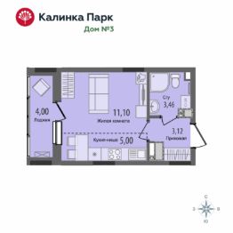 24,69 м² в доме 3 микрорайона Калинка Парк.