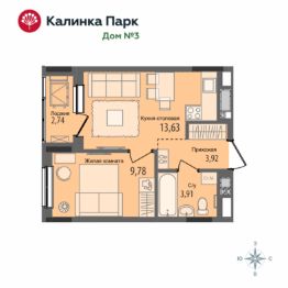 32,61 м² в доме 3 микрорайона Калинка Парк.