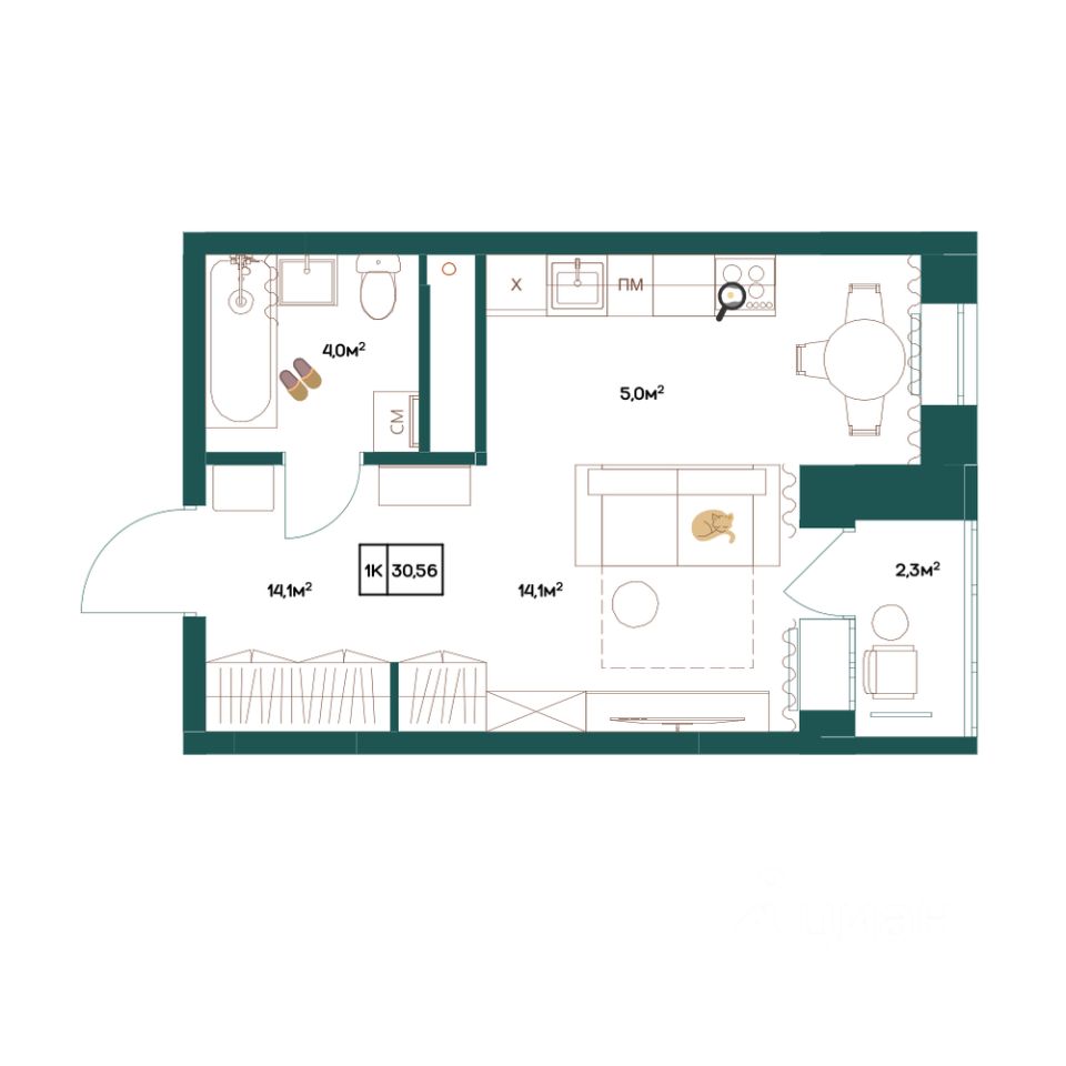 30,56 м²