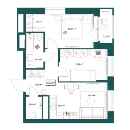 Продаётся 3-комнатная квартира в строящемся доме (Дом 1), срок сдачи: III-кв. 2028, общей площадью 59.97 кв.м., на 13 этаже.