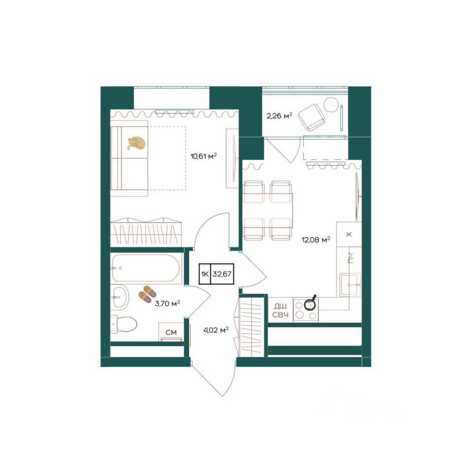 32,67 м²