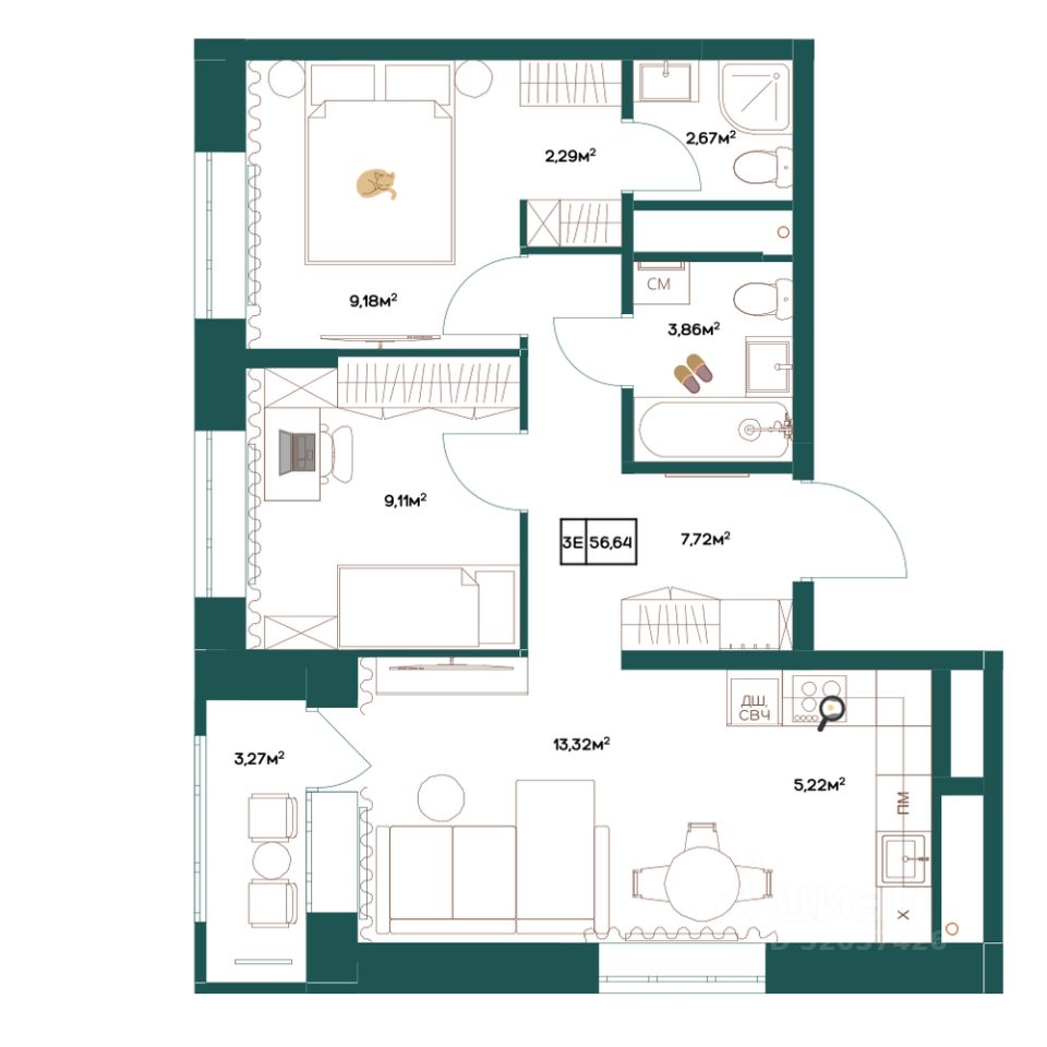 56,64 м²