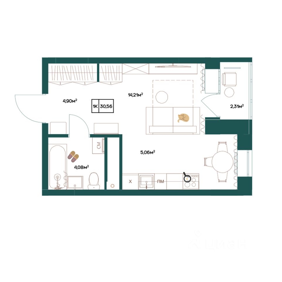 30,56 м²
