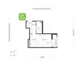 Площадь 30 кв.м. с возможностью зонирования на зону отдыха и кухню.