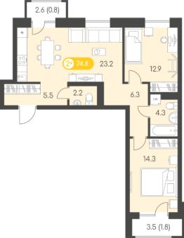 Продаётся 2-комнатная квартира в строящемся доме (Дом 19А), срок сдачи: IV-кв. 2025, общей площадью 74.8 кв.м., на 9 этаже. Новый восход - современный жилой комплекс на первой линии Воткинского шоссе. Дома жилого комплекса связывает благоустроенный променад, ведущий в парк Космонавтов.