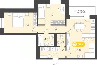 Продаётся 2-комнатная квартира в сданном доме (Дом 15А), срок сдачи: IV-кв. 2024, общей площадью 68.5 кв.м., на 5 этаже. Новый восход - современный жилой комплекс на первой линии Воткинского шоссе. Дома жилого комплекса связывает благоустроенный променад, ведущий в парк Космонавтов.