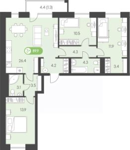 Продаётся 3-комнатная квартира в сданном доме (Дом 15А), срок сдачи: IV-кв. 2024, общей площадью 89.9 кв.м., на 5 этаже. Новый восход - современный жилой комплекс на первой линии Воткинского шоссе. Дома жилого комплекса связывает благоустроенный променад, ведущий в парк Космонавтов.