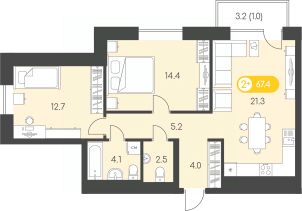 Продаётся 2-комнатная квартира в сданном доме (Воткинское шоссе, 53к1 (Дом 15Б)), срок сдачи: I-кв. 2025, общей площадью 67.4 кв.м., на 7 этаже. Новый восход - современный жилой комплекс на первой линии Воткинского шоссе. Дома жилого комплекса связывает благоустроенный променад, ведущий в парк Космонавтов.