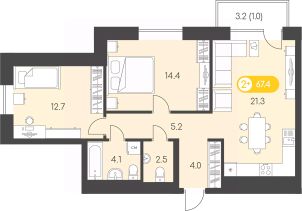 Продаётся 2-комнатная квартира в сданном доме (Воткинское шоссе, 53к1 (Дом 15Б)), срок сдачи: I-кв. 2025, общей площадью 67.4 кв.м., на 11 этаже. Новый восход - современный жилой комплекс на первой линии Воткинского шоссе. Дома жилого комплекса связывает благоустроенный променад, ведущий в парк Космонавтов.