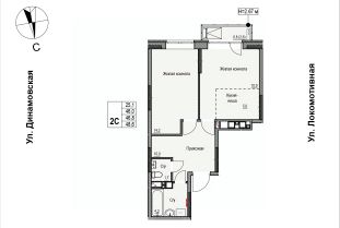 Продаётся 2-комнатная квартира в строящемся доме (Дом 2), срок сдачи: II-кв. 2028, общей площадью 46.9 кв.м., на 2 этаже. ЖК "Локомотив" - это жилой комплекс, состоящий из трех домов, объединенных стилобатом. Удобное расположение, 15 минут до центра.