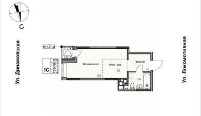 Продаётся 1-комнатная квартира в строящемся доме (Дом 2), срок сдачи: II-кв. 2028, общей площадью 26.7 кв.м., на 4 этаже. ЖК "Локомотив" - это жилой комплекс, состоящий из трех домов, объединенных стилобатом. Удобное расположение, 15 минут до центра.