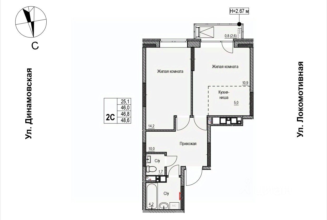 Продаётся 2-комнатная квартира в строящемся доме (Дом 2), срок сдачи: II-кв. 2028, общей площадью 46.8 кв.м., на 4 этаже. ЖК "Локомотив" - это жилой комплекс, состоящий из трех домов, объединенных стилобатом. Удобное расположение, 15 минут до центра.